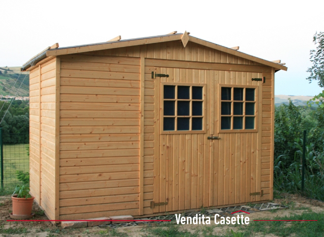 La casetta, a pannelli, risulta semplice e rapida da montare, in solido abete nordico, con porta frontale a due ante e con vetro incorporato.